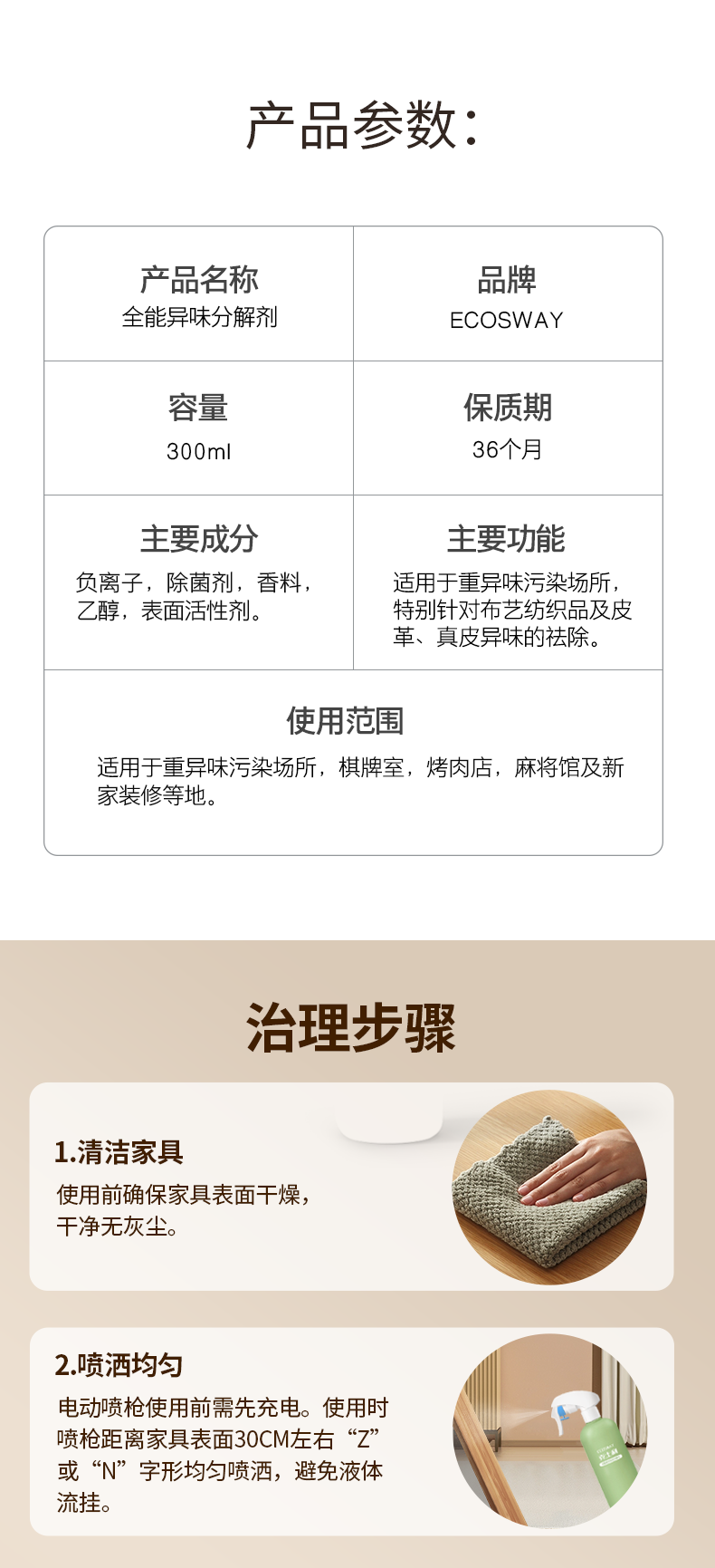 魁山科技ecosway全能除味劑裝修異味新車除味劑