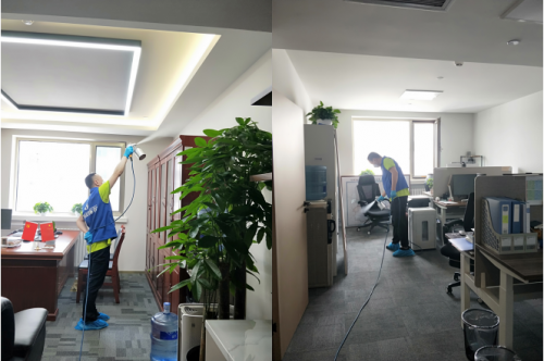 施工第1道:完全分解空氣中游離態(tài)污染物,采用方法:全空間霧化技術(shù)(空調(diào)新風窗戶需關(guān)閉)。